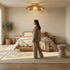 Fixé au plafond, il conserve une grande légèreté visuelle tout en apportant une présence décorative forte. Il transforme une contrainte technique - la hauteur sous plafond - en opportunité esthétique.